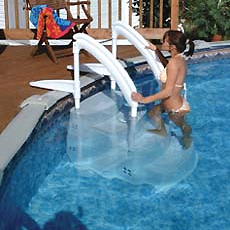 La scala amovibile FESTIVA con 4 gradini di Lumi-O è il risultato di diversi anni di studio. Economica e pratica, è facile da installare ed è progettata solamente per le piscine dal fondo piatto. Le sue superfici antiscivolo assicurano la massima sicurezza. Inoltre, le due rampe dotate di bracci di appoggio ne fanno un modello molto stabile per tutte le piscine profonde tra 1,21 e 1,37 metri.